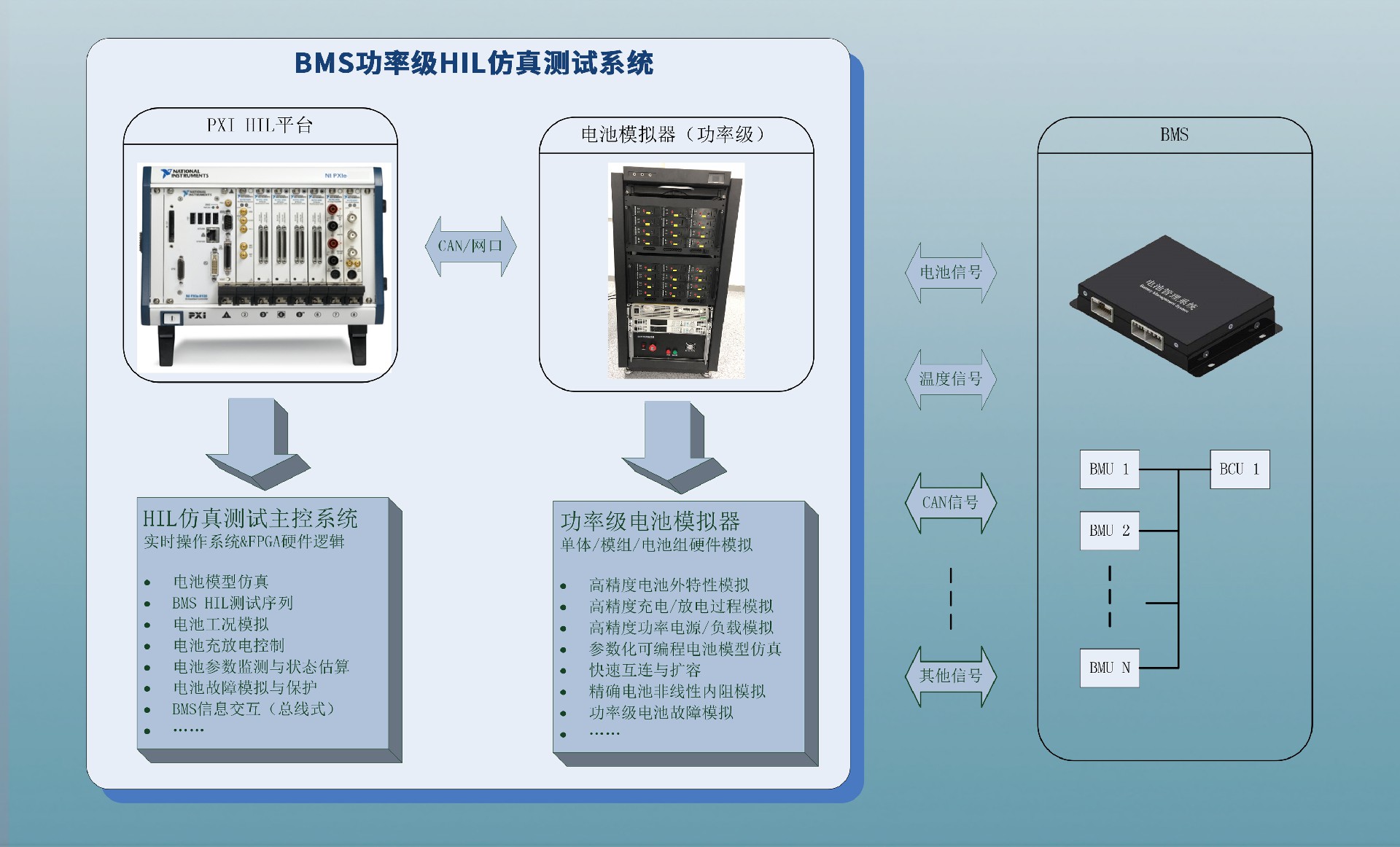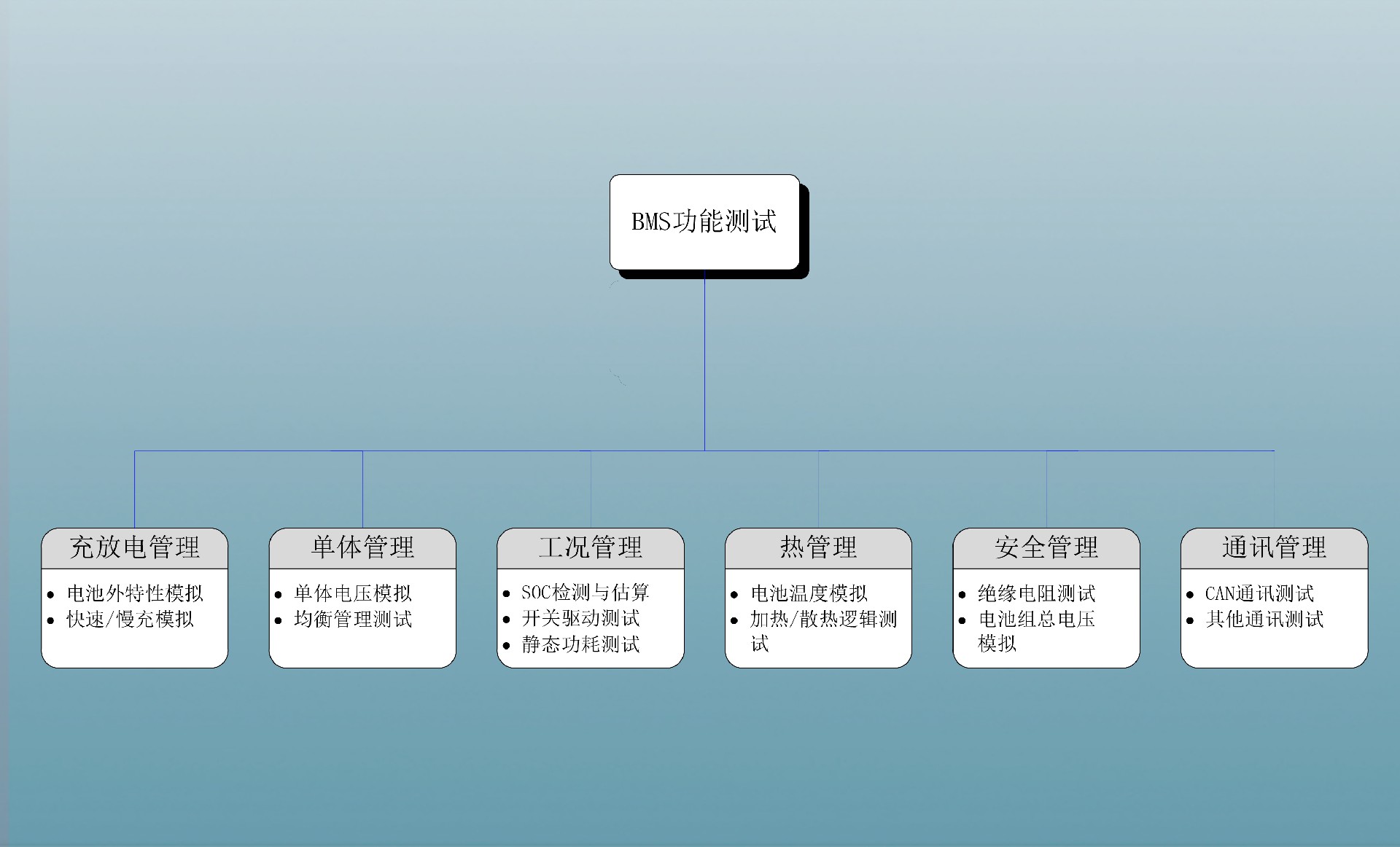 BMS功率級HIL仿真測試系統(tǒng),應(yīng)用于電動汽車BMS的性能驗(yàn)證、比對和試驗(yàn)研究,針對BMS完成如下測試內(nèi)容: