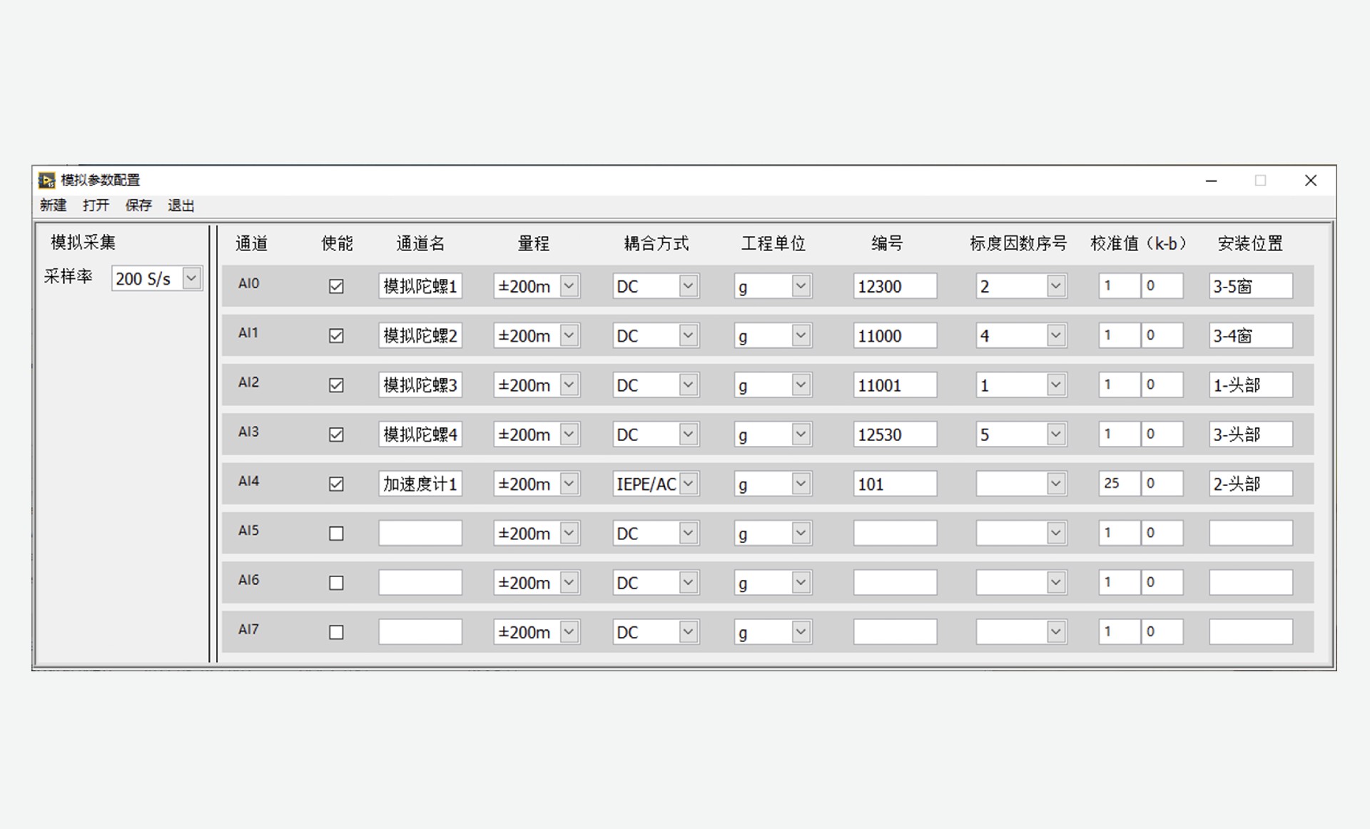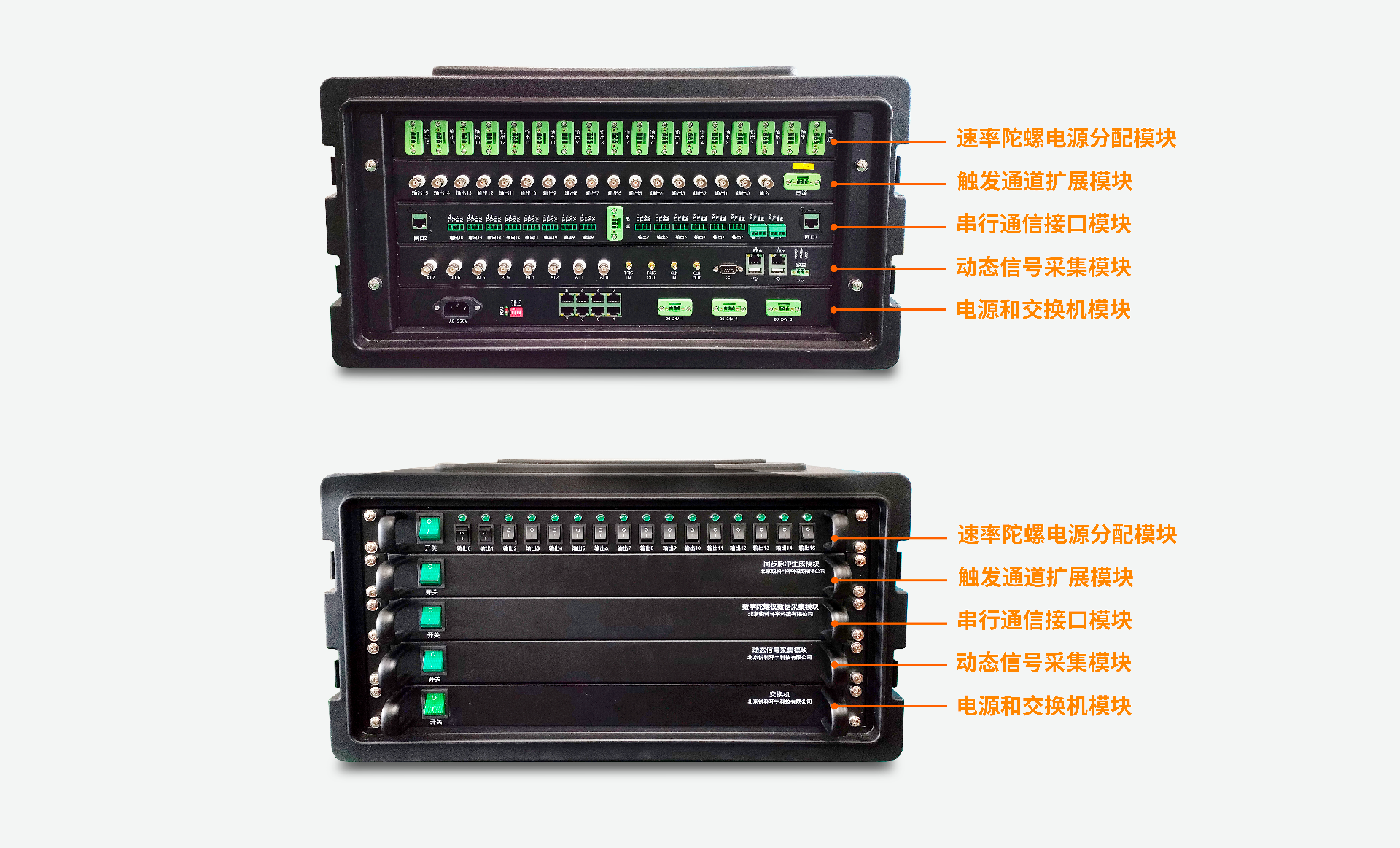 本系統(tǒng)的硬件采用模塊化設(shè)計、將主控模塊、同步脈沖輸出模塊、陀螺儀數(shù)據(jù)接收模塊、電源模塊等集成到便攜式機架機箱中,支持多路光纖速率陀螺傳感器的同步數(shù)據(jù)采集,提供友好的人機操作界面,適用于振型斜率試驗中傳感器配置、數(shù)據(jù)實時顯示記錄、數(shù)據(jù)回放分析。